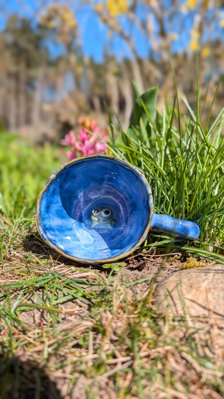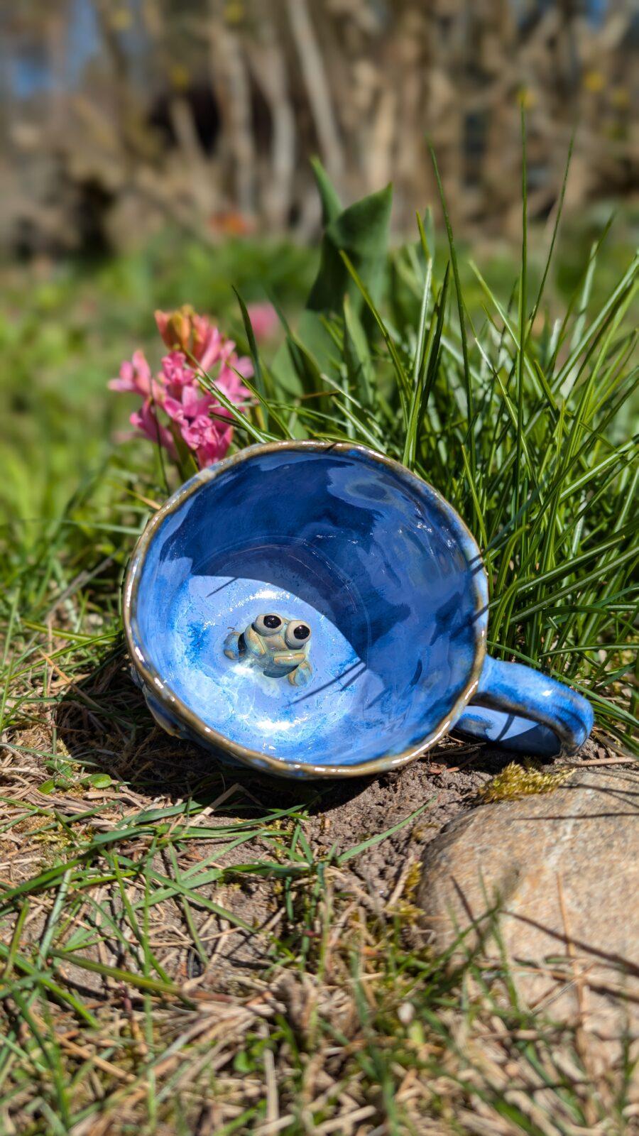 Kubek pokryty szkliwami bezpiecznymi do kontaktu z żywnością.