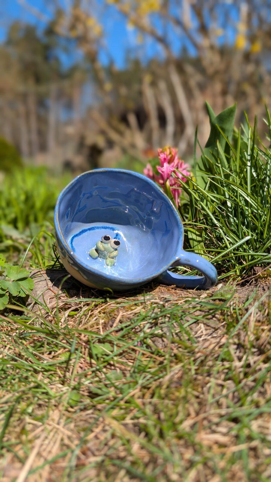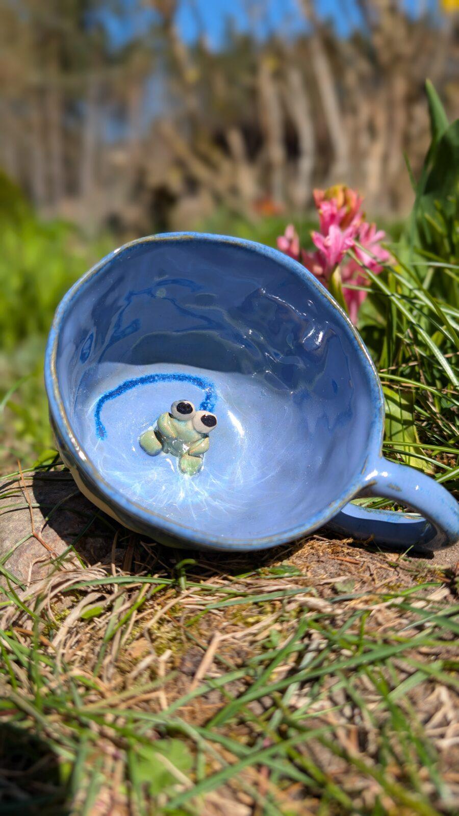 Kubek z żabą i kwiatkami