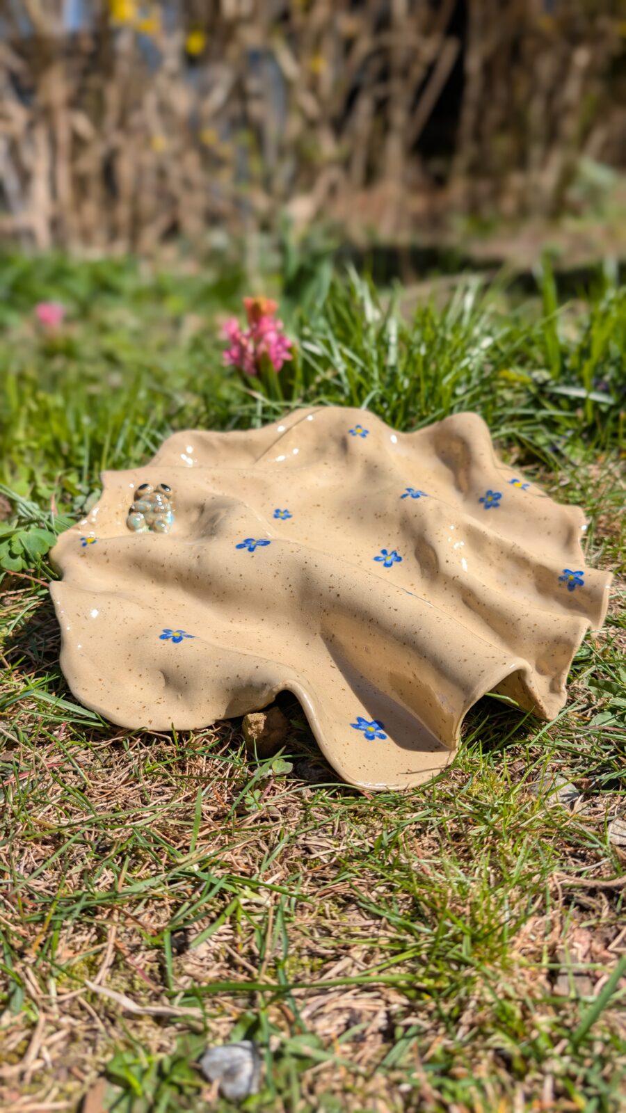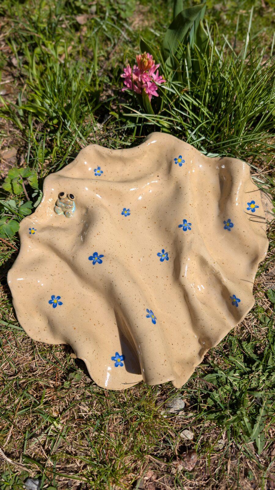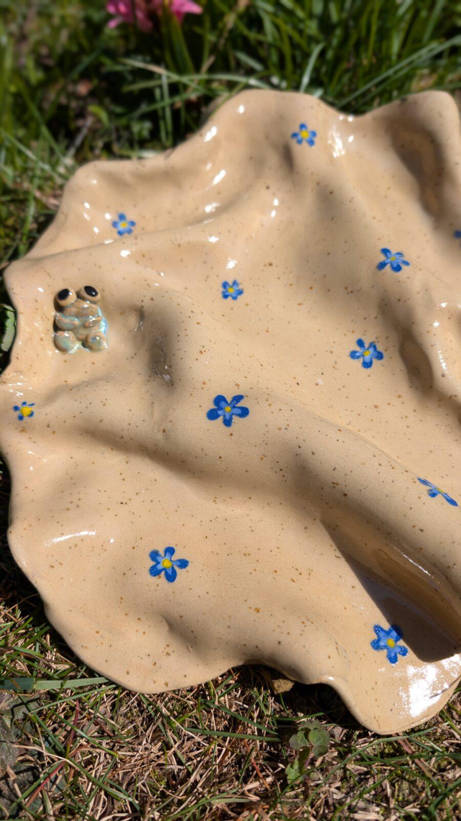 Ręcznie wykonany talerz o nieregularnym kształcie, szkliwiony. Każdy egzemplarz jest unikatowy – możliwe różnice w kształcie, kolorze i wykończeniu.